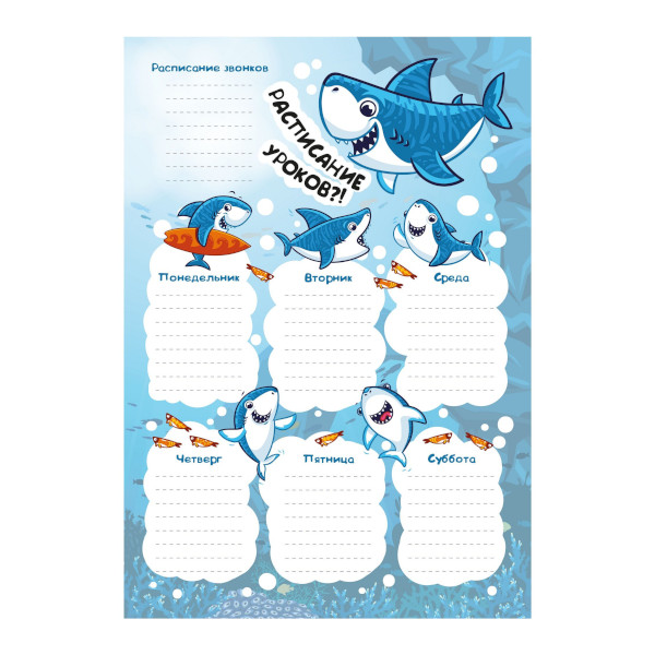 Расписание уроков А4 "Веселые акулы" мел. картон РЛ40009 Listoff