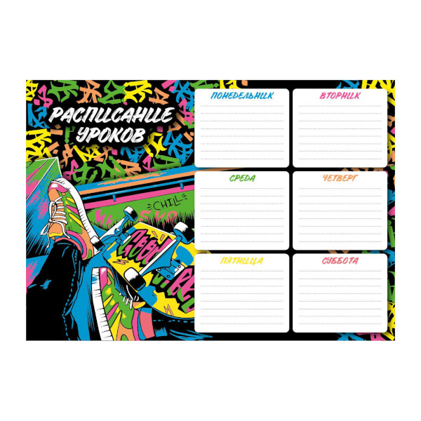 Доп. описание: Расписание уроков А4, арт.63551/К/ 50 СКЕЙТМУД (210x297 мм...