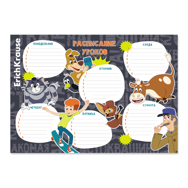 Расписание уроков А4 "Простоквашино" мел. картон 61934 Erich Krause