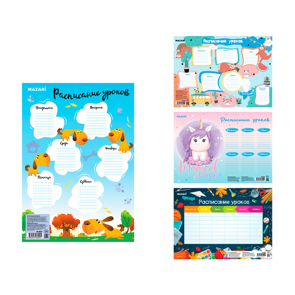 Расписание уроков A4 картон, ассорти M-1654 MAZARI ТМ