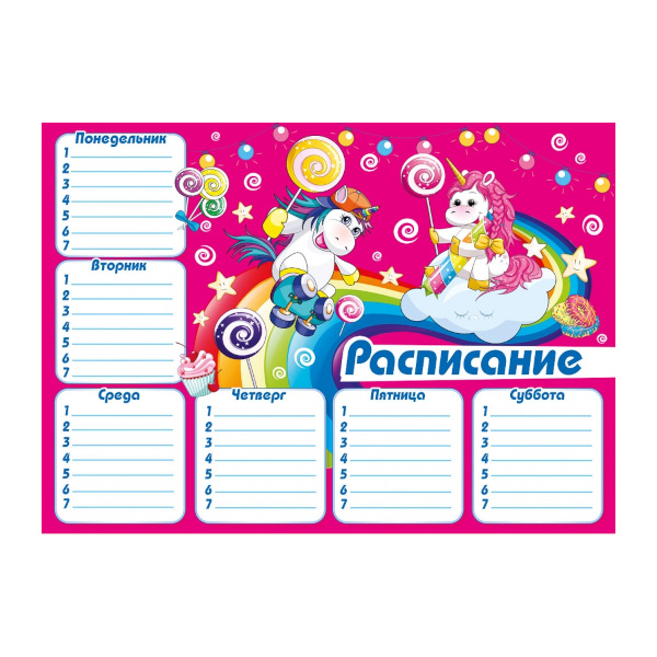 Расписание уроков 210*300мм "Яркие единороги" розовый 044099 ГК Горчаков