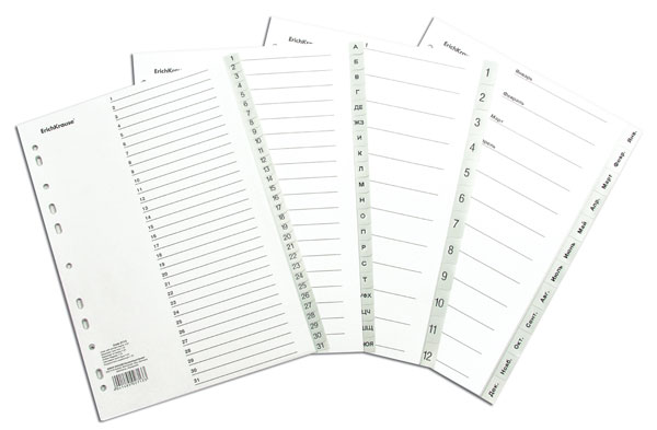 Разделитель А4 цифровой (1-31), индексы, серый, пластик 55901/2713 Erich Krause