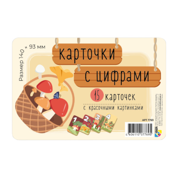 Обучающие карточки "Веселый счет с грибами" 15 карт, 140*93мм 7769 Квадра