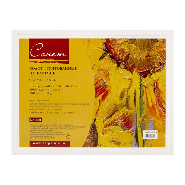 Холст грунтованный на картоне 30*40см, 280г/м2, мелкое зерно, хлопок "Сонет" DK13701-30x40