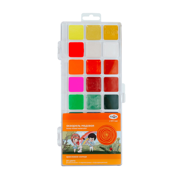 Акварель мед. Гамма "Оранжевое солнце" 24цв без кист. в пласт.уп. 316878