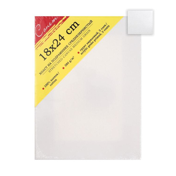 Холст грунтованный на подрамнике 18*24см, 380г/м2, среднее зерно, хлопок "Сонет" E5305-B-18x24