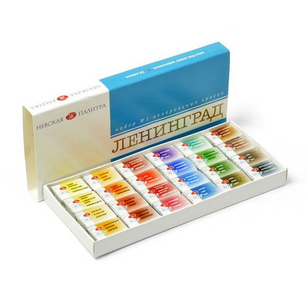 Акварель худож. Невская Палитра "Ленинград-1" 24цв без кист., кюветы 2,5мл в карт.уп. 1941015