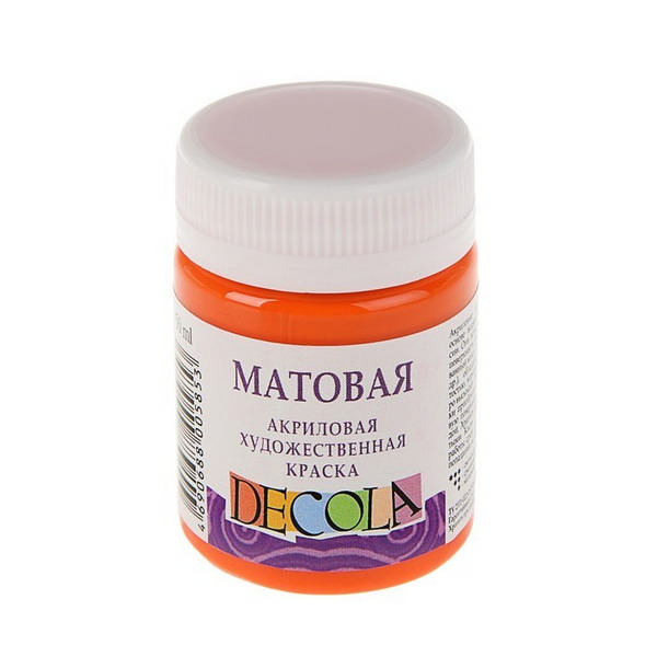 Краски акриловые Невская Палитра "Decola" матовая, оранжевый, 50мл в банке, 14328315