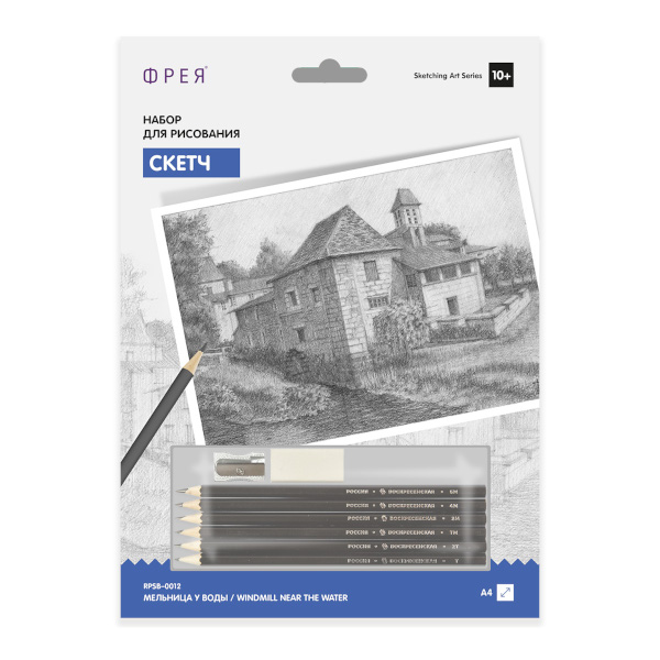 Картина по номерам ч/гр карандашами ФРЕЯ 21*29,7см "Мельница у воды" RPSB-0012