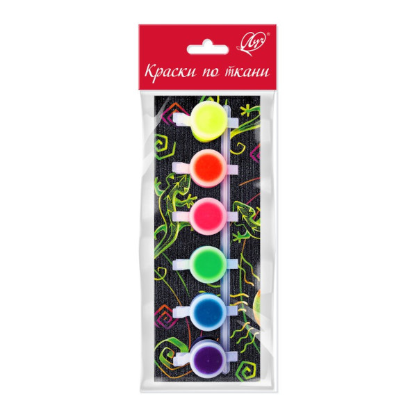 Краски акриловые по ткани Луч "Флуорисцентные" 6цв, 5мл в блок-таре, пакет 32С 2147-08