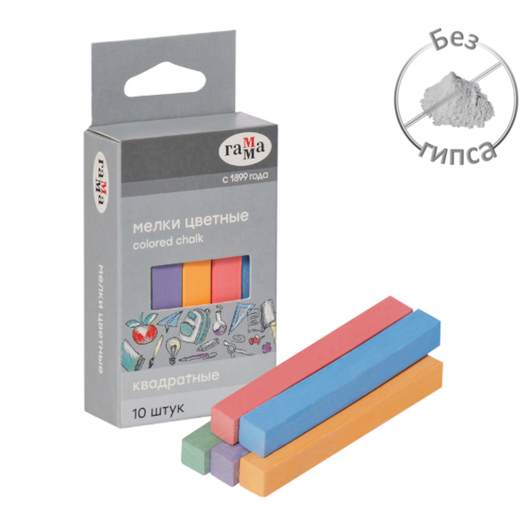 Мел цветной 10цв/10шт школьный, квадратный, карт.уп. 909194 ГАММА