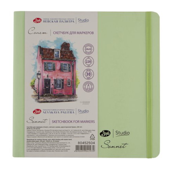 Скетчбук для маркеров 200*200мм 30л, 220г/м2, сшивка "Сонет" мятн., рез. 80452504 Невская палитра