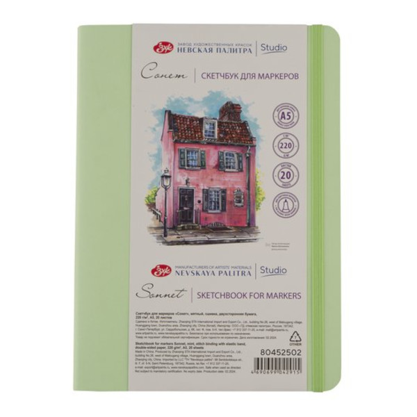 Скетчбук для маркеров А5 20л, 220г/м2, сшивка "Сонет" мятный, рез. 80452502 Невская палитра