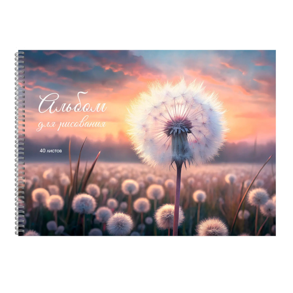 Альбом для рис 40л А4 "Поле одуванчиков" 120г/м2, гребень, мел.карт. АСЛ402645 Listoff