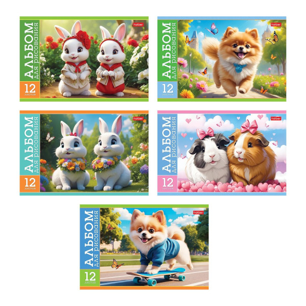 Альбом для рис 12л А5 "Пушистые милашки" 100г/м2, скоба, ассорти 12А5В Hatber