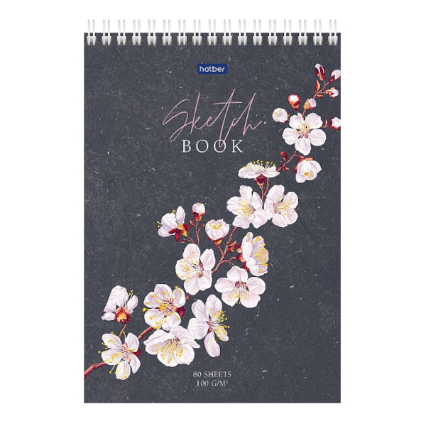 Скетчбук для графики и письма А5 80л, 100г/м2, гребень "Цветущая сакура" 80Б5Aгр_31746 Hatber