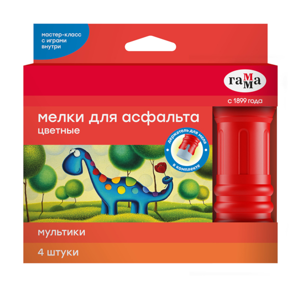 Мел цветной 4цв/4шт асфальтовый "Мультики" пластик.держатель, круглый, карт.уп. 221120224 Гамма