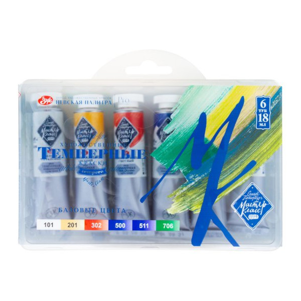 Краски темперные Невская палитра "Мастер класс" базовые 6цв, 18мл в тубе, пластик.коррекс 161392078