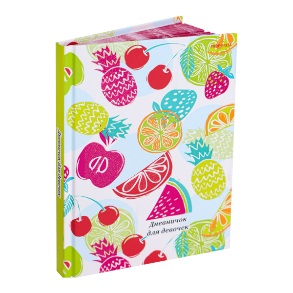 Дневничок для девочки А6 80л "Фруктовый праздник-1" сшивка, тв.обл., 7БЦ 80-5752 Проф Пресс