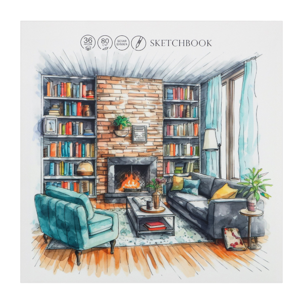 Скетчбук для маркеров 215*215мм 36л, 80г/м2, склейка "У камина" 36-0104 Проф Пресс