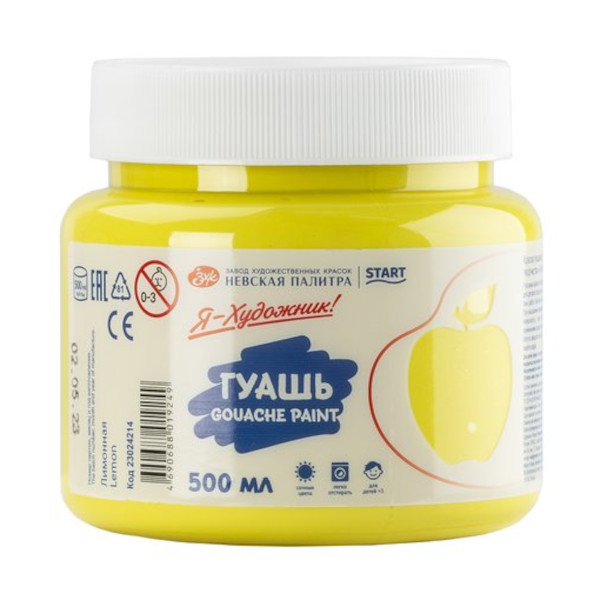 Гуашь Невская палитра "Я - Художник!" лимонная, 500мл 23024214