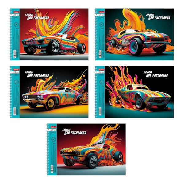 Альбом для рис 24л А4 "Динамичные авто" 100/м2, спираль, мел.картон, ассорти, перф. 24А4мтлВсп Hatber
