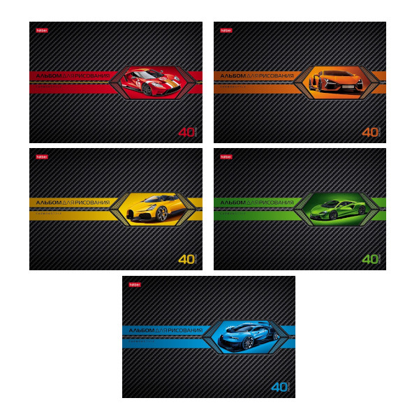 Альбом для рис 40л А4 "AutoCarbon" 100г/м2, скоба, обл.мел.картон, ассорти 40А4вмВ Hatber