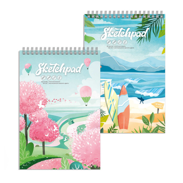 Скетчпад для графики и письма А4- 80л, 100г/м2, гребень "Лето" перевертыш 62829 Феникс+