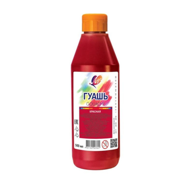 Гуашь Луч красная, бутылка с дозатором 500мл 19С 1305-08