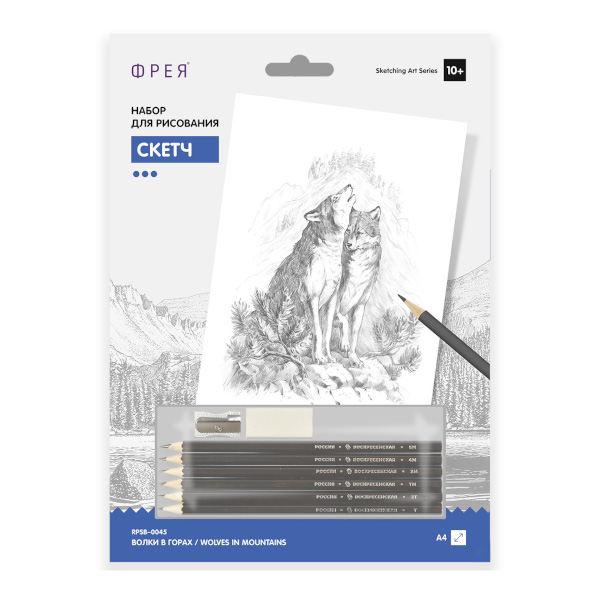 Картина по номерам ч/гр карандашами ФРЕЯ 20,5*29,5см "Волки в горах" RPSB-0045