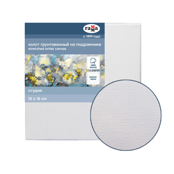 Холст грунтованный на подрамнике 15*15см, 280г/м2, мелкое зерно, хлопок "Студия" 60220201 Гамма