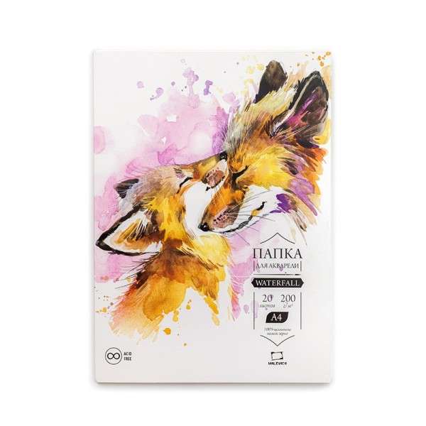 Папка для акварели "Waterfall", 200 г/м2, А4 20л 402114 Малевичъ