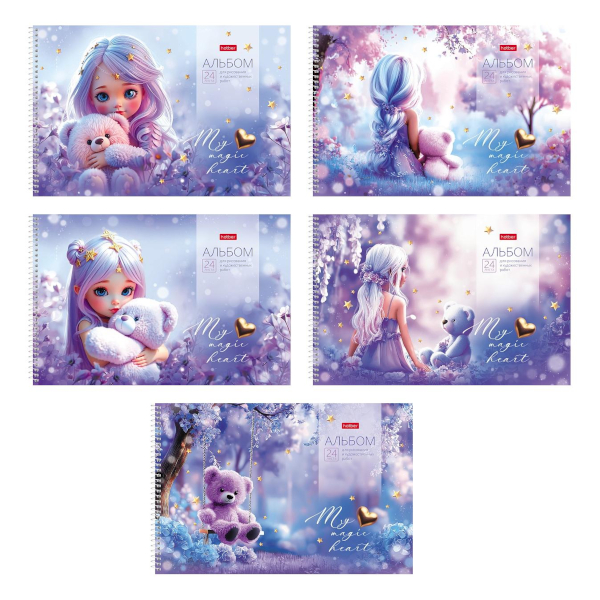 Альбом для рис 24л А4 "Лилу" 100/м2, спираль, картон, ассорти, перф. 24А4лВсп Hatber