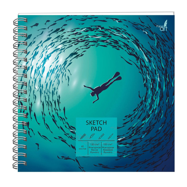 Скетчбук комбинир. 190*190мм 60л, беж/бел, 100/120г/м2, гребень "Погружение" СПС60184 Paper Art