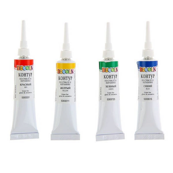 Краски-контур акриловые Невская Палитра стекло/керамика "Decola" 4цв,18мл в банке,карт.уп. 5341409