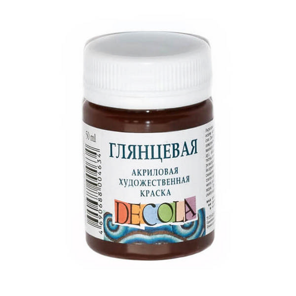 Краски акриловые Невская Палитра "Decola" глянцевая, коричневая, 50мл в банке, 2928419