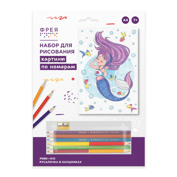 Картина по номерам карандашами ФРЕЯ 20,5*29,5см "Русалочка в наушниках" PNBK-010