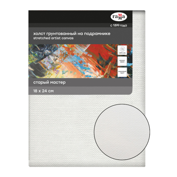 Холст грунтованный на подрамнике 18*24см, 370г/м2, мелкое зерно, лен "Старый мастер" 100920202 Гамма