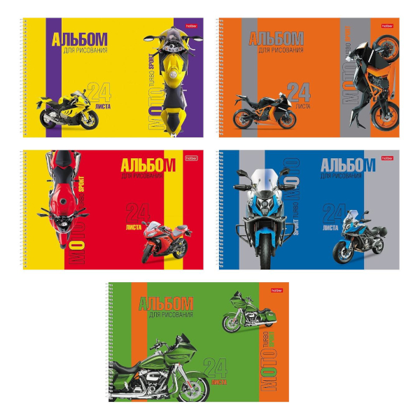 Альбом для рис 24л А4 "TurboМото" 100/м2, спираль, картон, ассорти, перф. 24А4вмВсп Hatber