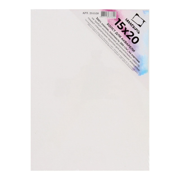 Холст акварельный на картоне 15*20см, 280г/м2, мелкое зерно, хлопок 251520 Малевичъ