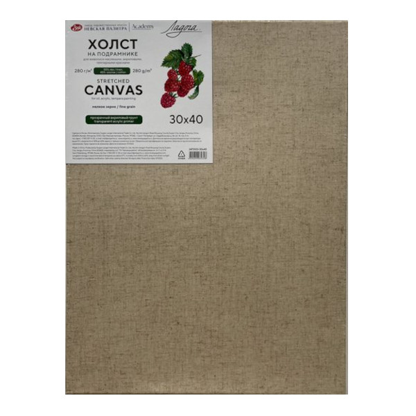 Холст прозрач. грунт на подрамнике 30*40см, 280г/м2, мелкое зерно, хлопок/лен "Ладога" 2473103-30х40