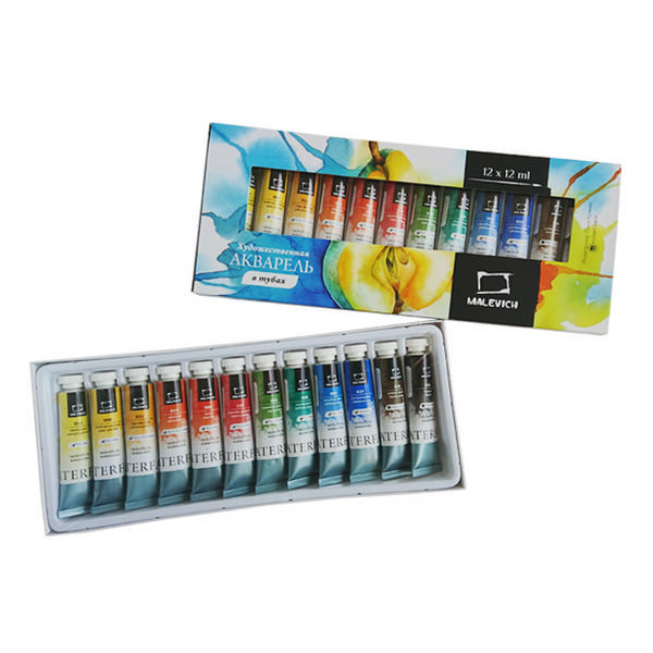 Акварель худож. Малевичъ " WaterFall" 12цв без кист., туба 12мл в карт.уп. 622112