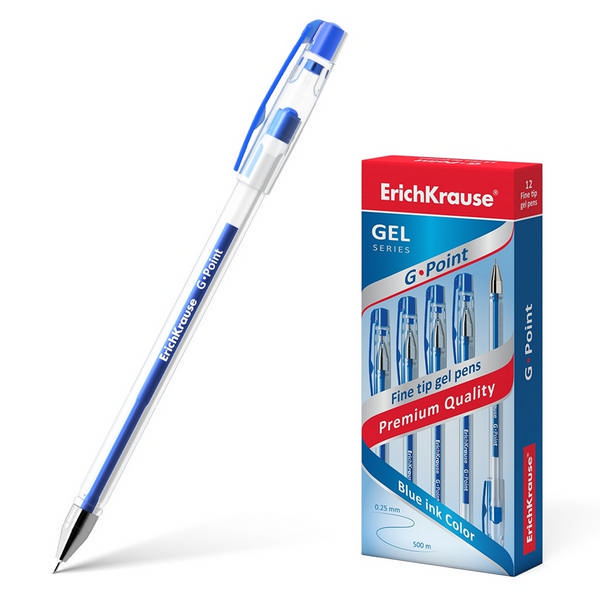 Ручка гелевая 0,38мм, синий, игольч., прозрач. корп. "G-Point" 17627 Erich Krause