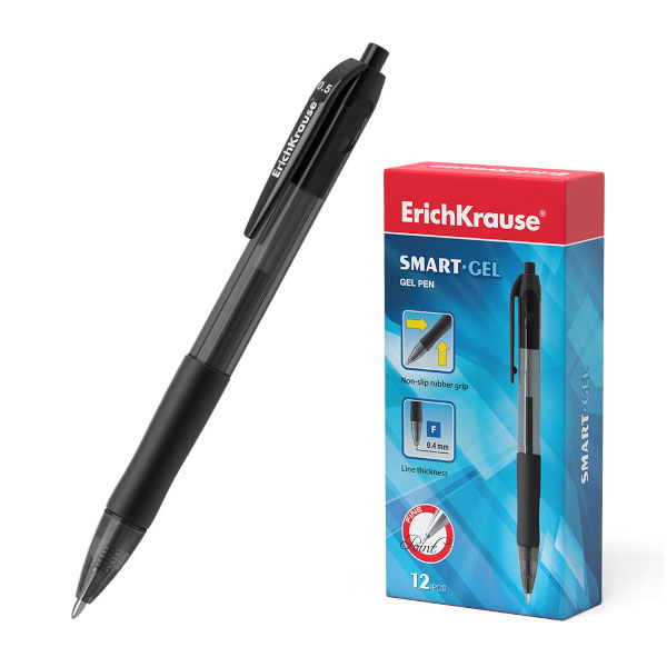 Ручка гелевая автомат. 0,5мм, черный, грип, черн. корп. "Smart-Gel" 39012 Erich Krause