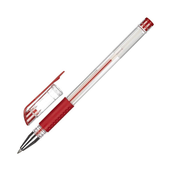 Ручка гелевая 0,5мм, красный, грип, прозрач. корп. "Economy" 901704 Attache