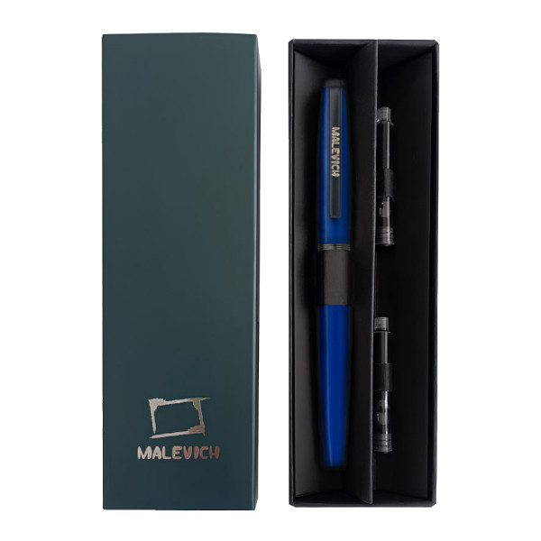 Ручка перьевая Малевичъ с конвертером, черная тушь, значок, кругл.корп, ультрамарин 0,4мм 196429