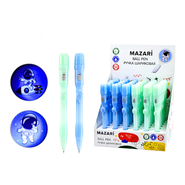 Ручка шар. автомат. 0,7мм, синий, ассорти корп., проектор "Lamp Astronaut" M-7881-70 MAZARI