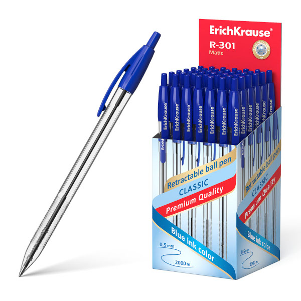 Ручка шар. автомат. 1,0мм, синий, прозрач. корп. "R-301 Matic Classic" 38509 Erich Krause