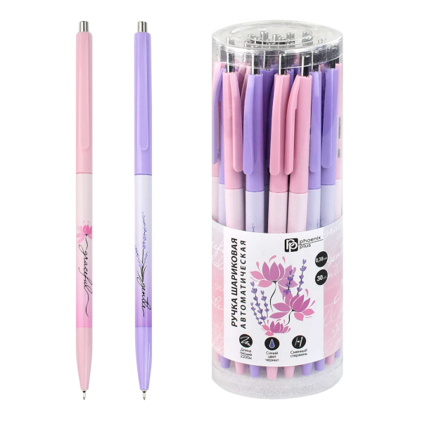 Ручка шар. автомат. 0,38мм, синий, ассорти корп. "Цветы" 69552 Феникс+