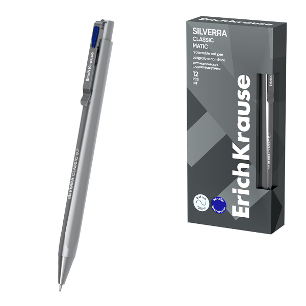 Ручка шар. автомат. масл. осн. 0,7мм, синий, серебр. корп. "Silverra Matic" 63132 Erich Krause